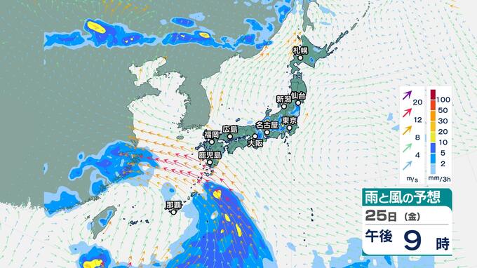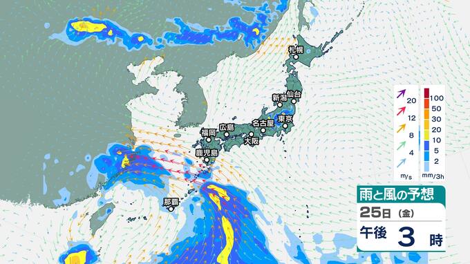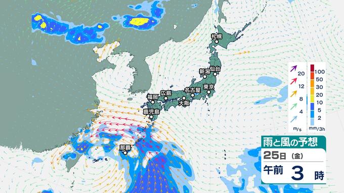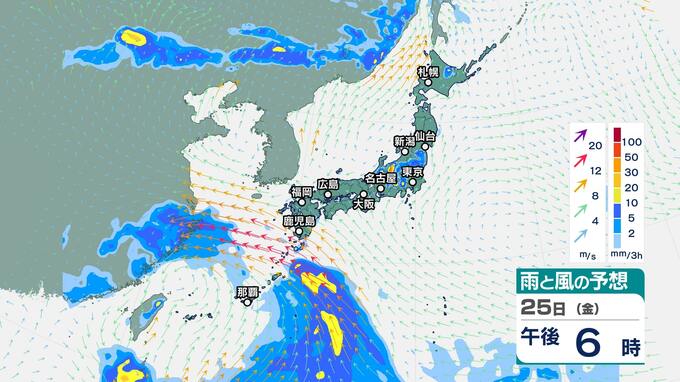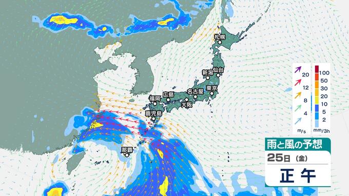 ニュースクリップ 【台風7号】1時間に約25キロの速さで北西へ…24日から25日にかけて沖縄・奄美地方に接近【雨と風のシミュレーション】土砂災害や低地の浸水、うねりを伴う高波に注意・警戒を 2025年7月23日(水) 17:41 国内 天気 25日(木)雨と風のシミュレーション