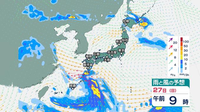 ニュースクリップ 【台風7号】1時間に約25キロの速さで北西へ…24日から25日にかけて沖縄・奄美地方に接近【雨と風のシミュレーション】土砂災害や低地の浸水、うねりを伴う高波に注意・警戒を 2025年7月23日(水) 17:41 国内 天気 27日(日)雨と風のシミュレーション