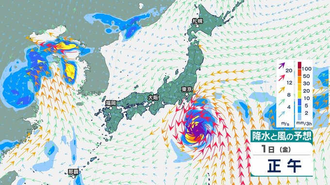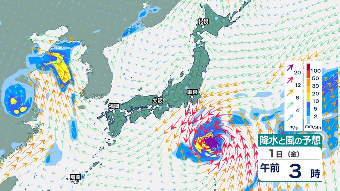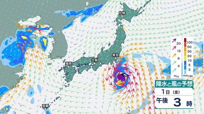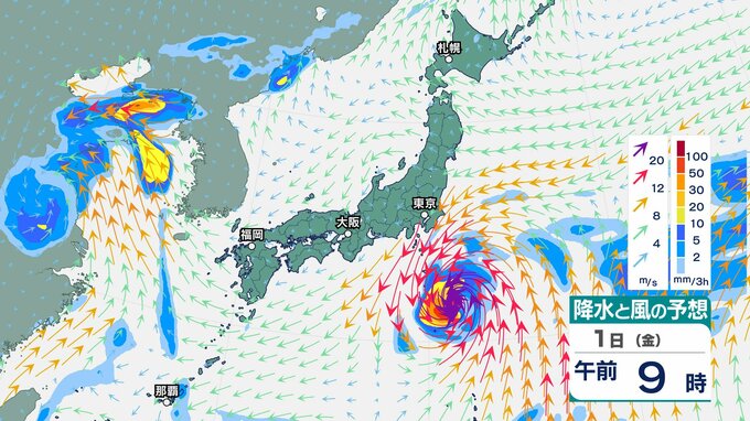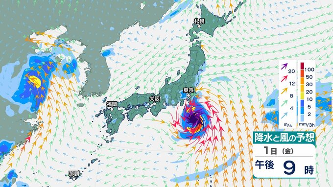 ニュースクリップ 【気象情報】台風9号接近 伊豆諸島と関東地方では1~2日にかけてうねりを伴った高波に 関東地方では2日は暴風に警戒 大雨による土砂災害や低い土地の浸水、河川の増水にも注意・警戒を【雨と風のシミュレーション】 2025年7月31日(木) 08:35 国内 1日(金)雨と風のシミュレーション