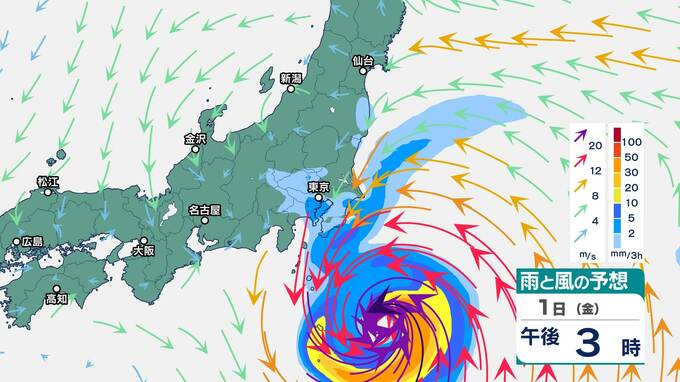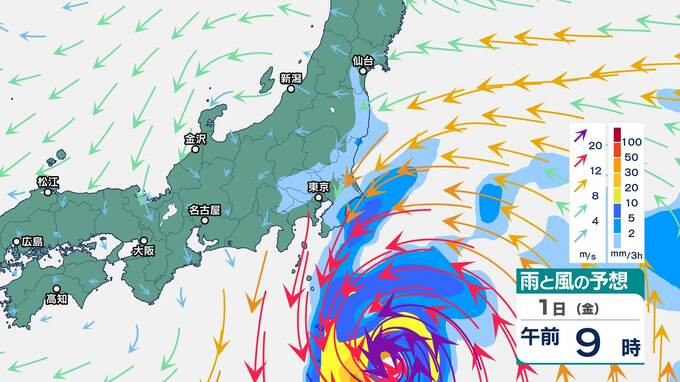 台風9号が北上中、2日東日本に接近「海岸には近づかないで」 関東地方で24時間降水量最大120ミリの大雨予想【雨と風のシミュレーション】 2025年7月31日(木) 10:34 国内 天気 1日(金)雨と風のシミュレーション