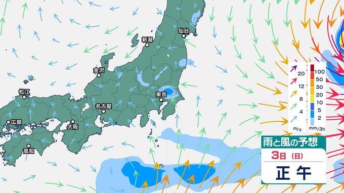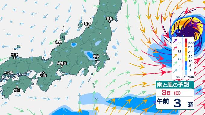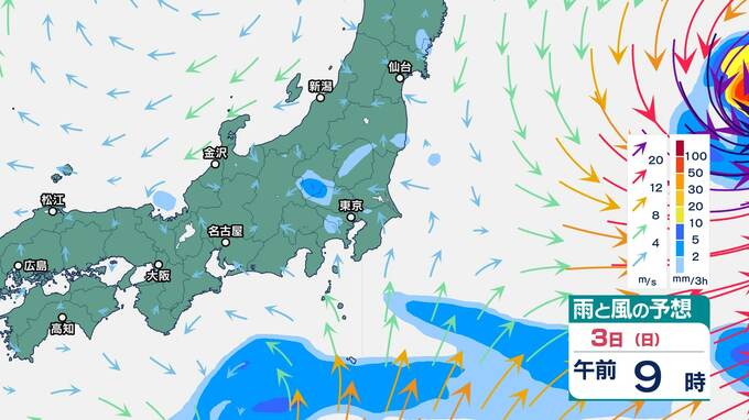 台風9号が北上中、2日東日本に接近「海岸には近づかないで」 関東地方で24時間降水量最大120ミリの大雨予想【雨と風のシミュレーション】 2025年7月31日(木) 10:34 国内 天気 3日(日)雨と風のシミュレーション