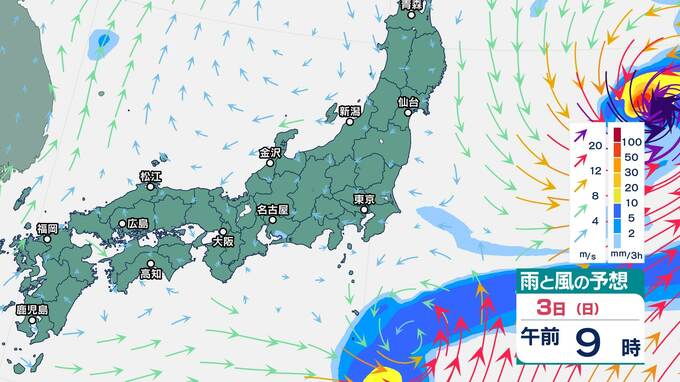 【台風情報】台風9号はいまどこに?今後の進路は?1日は伊豆諸島の東を北上、2日は暴風域を伴って関東の東へ 暴風、うねりを伴った高波に警戒を【雨と風のシミュレーション】 2025年8月1日(金) 09:10 国内 暮らし・マネー 3日(日)雨と風のシミュレーション