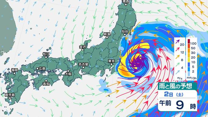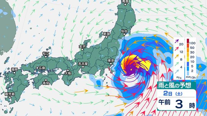 【関東甲信】台風9号が暴風域を伴って2日に関東に接近し『警報級の大雨』となる可能性 2日夜のはじめ頃にかけて雷を伴った激しい雨の降る所も…【雨と風のシミュレーション】 2025年8月1日(金) 11:45 国内 暮らし・マネー 2日(土)雨と風のシミュレーション