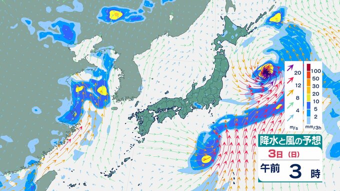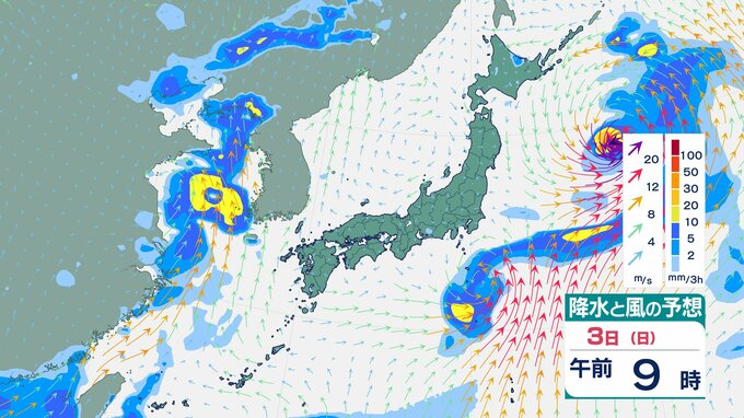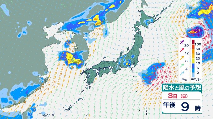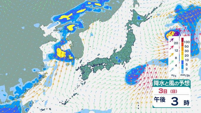 ニュースクリップ 【台風のたまご】熱帯低気圧が台風へ…2日午前0時には変わる見込み 台風9号とあわせてダブル台風に 東南東に20キロの速さで進む 【雨風シミュレーション】 2025年8月1日(金) 14:54 国内 天気 3日(日)の雨風シミュレーション