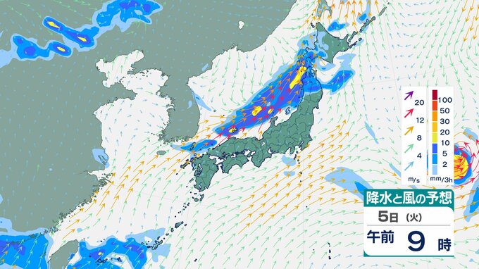 ニュースクリップ 【台風のたまご】熱帯低気圧が台風へ…2日午後3時までに変わる見込み 台風9号とあわせてダブル台風に 台風に発達した後も北東進を続け、日本の東海上を進む予想【雨風シミュレーション】 2025年8月2日(土) 06:02 国内 天気 5日(火)の雨風シミュレーション