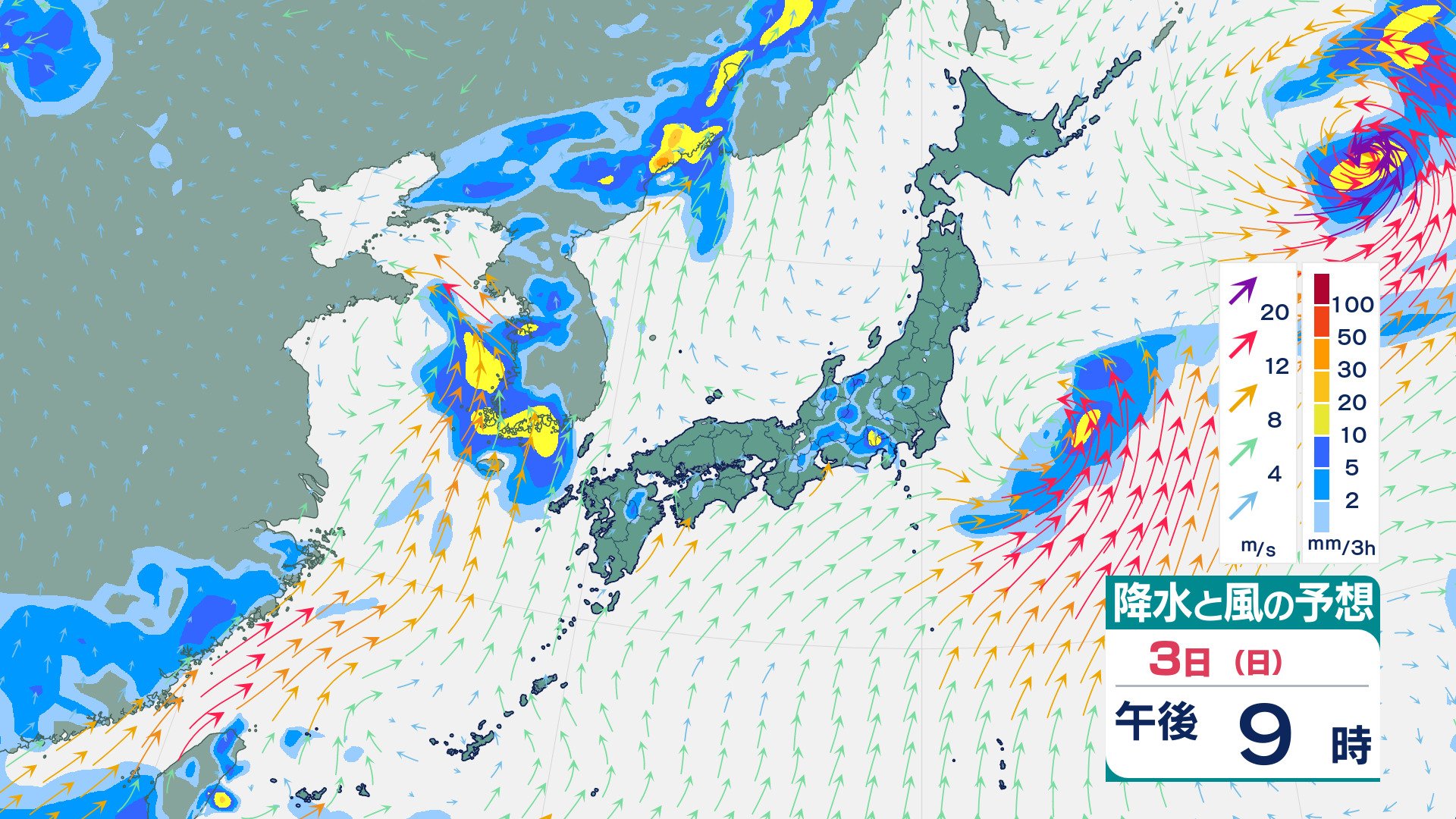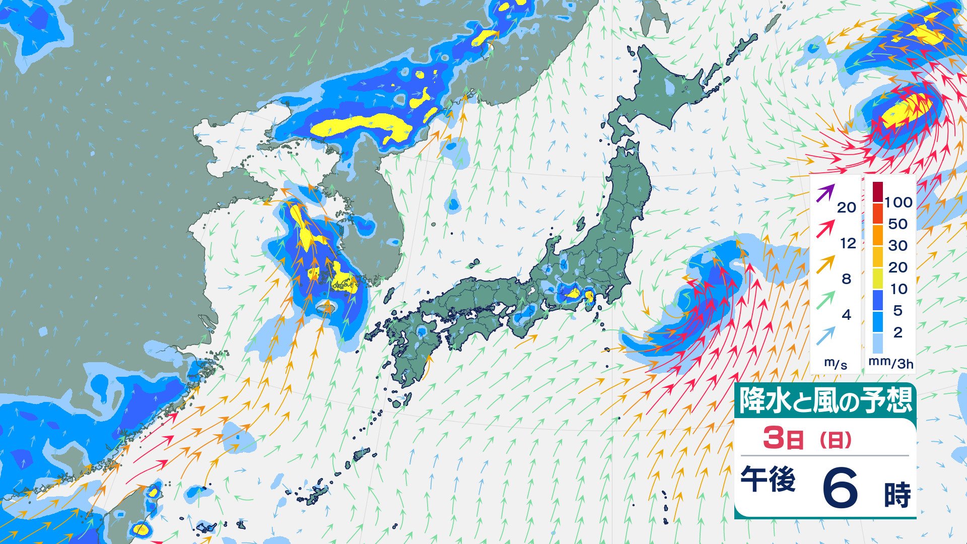 ニュースクリップ 【ダブル台風】台風10号が発生…時速約30キロで北北東へ進む 本州への直接的な影響は限定的も、海上では波が高くなるおそれ 【雨と風のシミュレーション】 2025年8月3日(日) 11:32 国内 天気 3日(日)の雨風シミュレーション