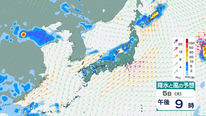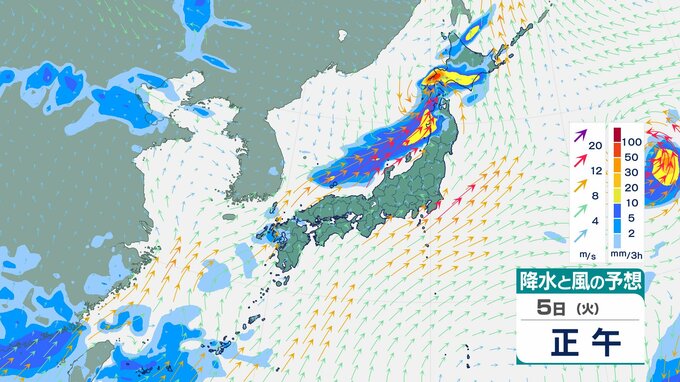 ニュースクリップ 【台風情報】台風10号いま、どこに?今後の進路は?銚子市の東南東約230キロを1時間におよそ35キロの速さで北東へ【雨と風のシミュレーション】 2025年8月3日(日) 16:26 国内 天気 5日(火)の雨風シミュレーション