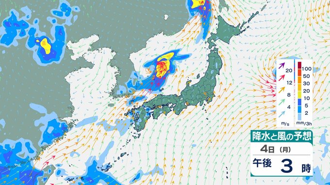 ニュースクリップ 【大雨情報】多いところで1時間に40mmの雨量予想…警報級の大雨となる可能性も 東北地方 【雨風シミュレーション】低気圧が津軽海峡付近を通過する見込み 2025年8月4日(月) 10:31 国内 天気 4日(月)の雨風シミュレーション