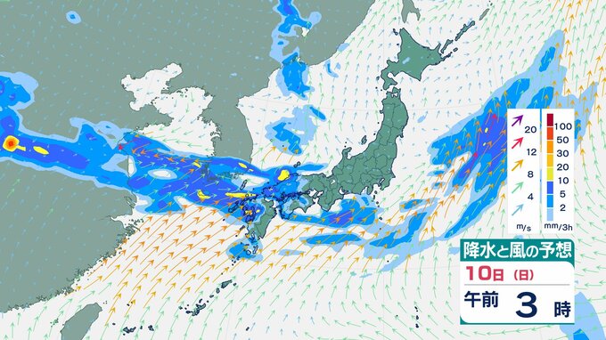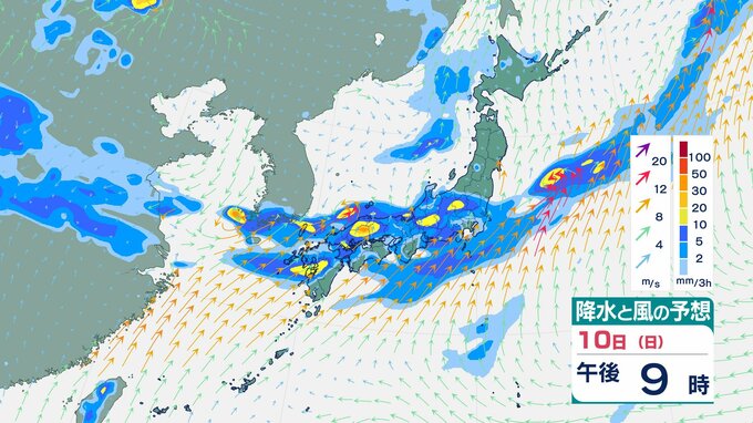 ニュースクリップ 10年に一度の著しい高温に…北海道・東北・関東甲信・北陸・東海・近畿・中国・四国・九州北部が対象 北海道は平年より2.9℃以上高いか 早期天候情報 2025年8月8日(金) 15:02 国内 10日(日)の雨風シミュレーション
