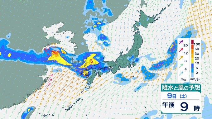 ニュースクリップ 【大雨情報】近畿地方は、10日未明から11日にかけて非常に激しい雨が降る見込み 近畿南部で180ミリの降水予想 10日夕方までの24時間【雨風シミュレーション】 2025年8月9日(土) 20:50 国内 天気 9日(土)の雨風シミュレーション
