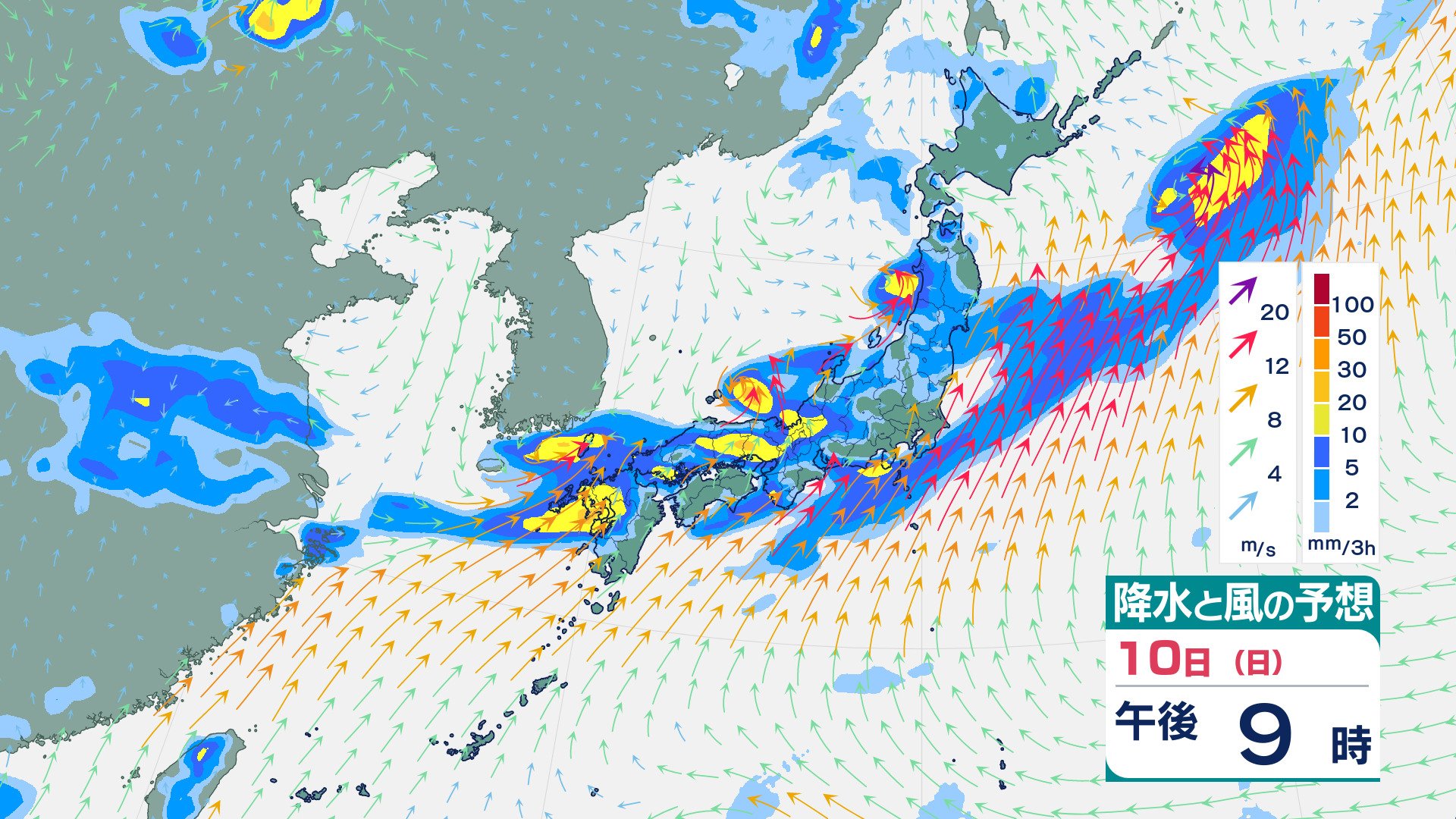 ニュースクリップ 福岡県で線状降水帯が発生…命に危険が及ぶ土砂災害や水害の危険度が急激に高まるおそれ 11日正午までに多いところで250mmの降雨予想【雨風シミュレーション】 2025年8月10日(日) 12:59 国内 天気 10日(日)の雨風シミュレーション
