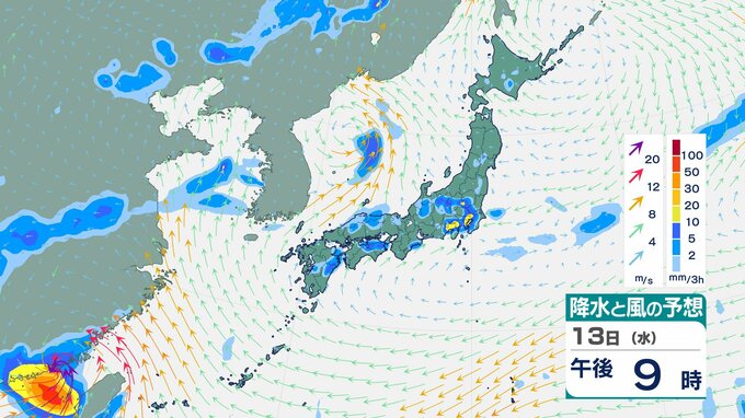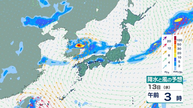 ニュースクリップ 【大雨情報】多いところでは1時間に40mmの降雨予想…11日にかけ、低気圧通過の見込み 中国地方【雨風シミュレーション】土砂災害に厳重警戒を 2025年8月10日(日) 13:52 国内 天気 13日(水)の雨風シミュレーション