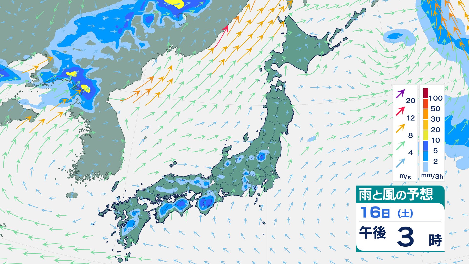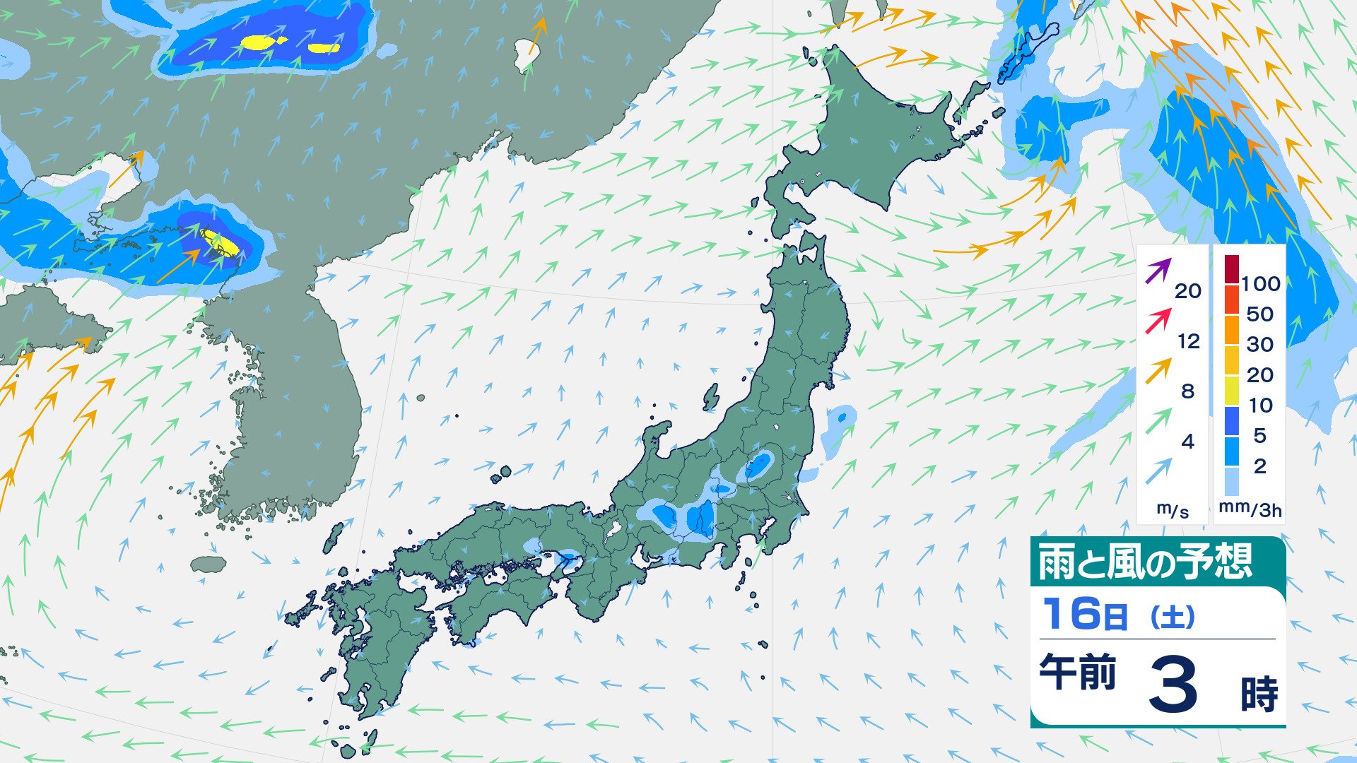 ニュースクリップ 【台風情報】台風11号 沖縄の南を西へ…先島諸島は高波と強風に警戒、波の高さは6メートルに達する見込み【雨と風のシミュレーション】 2025年8月13日(水) 11:03 国内 天気 16日(土)の雨風シミュレーション