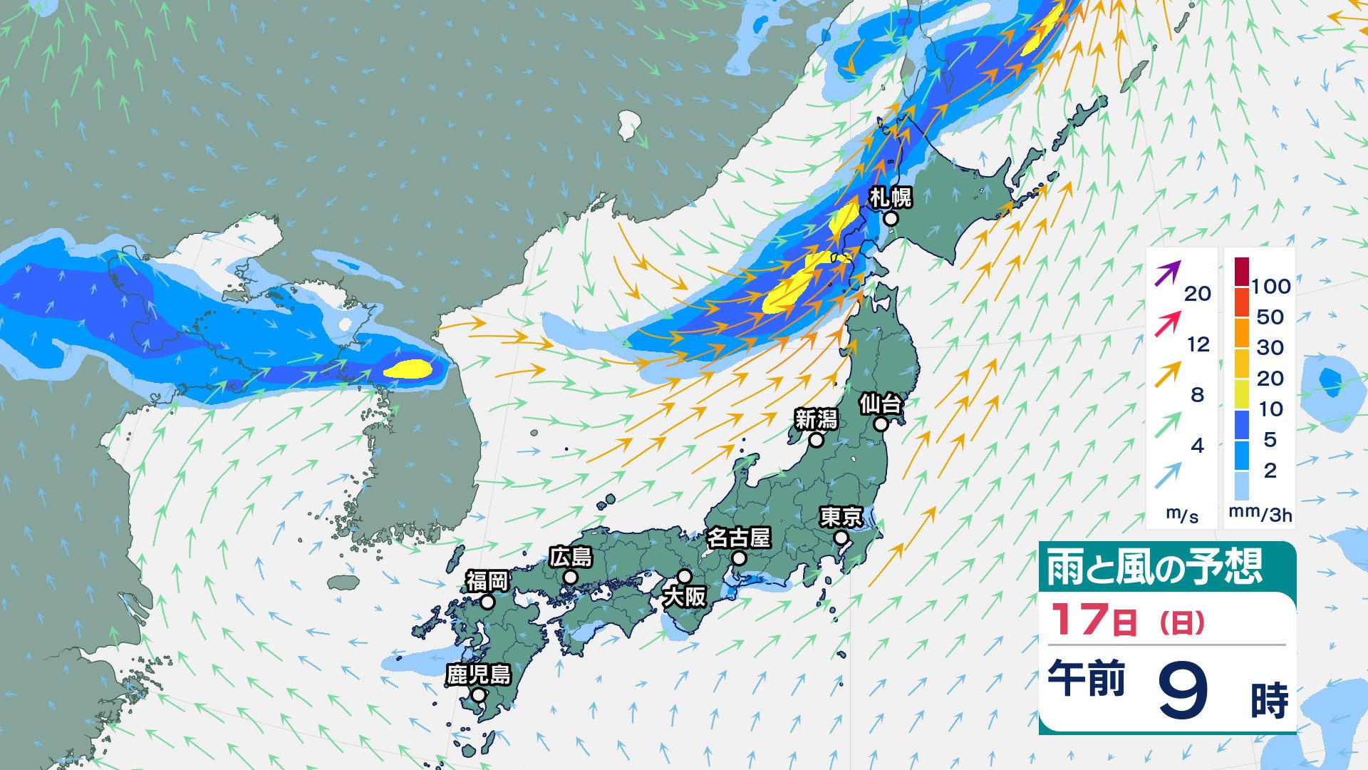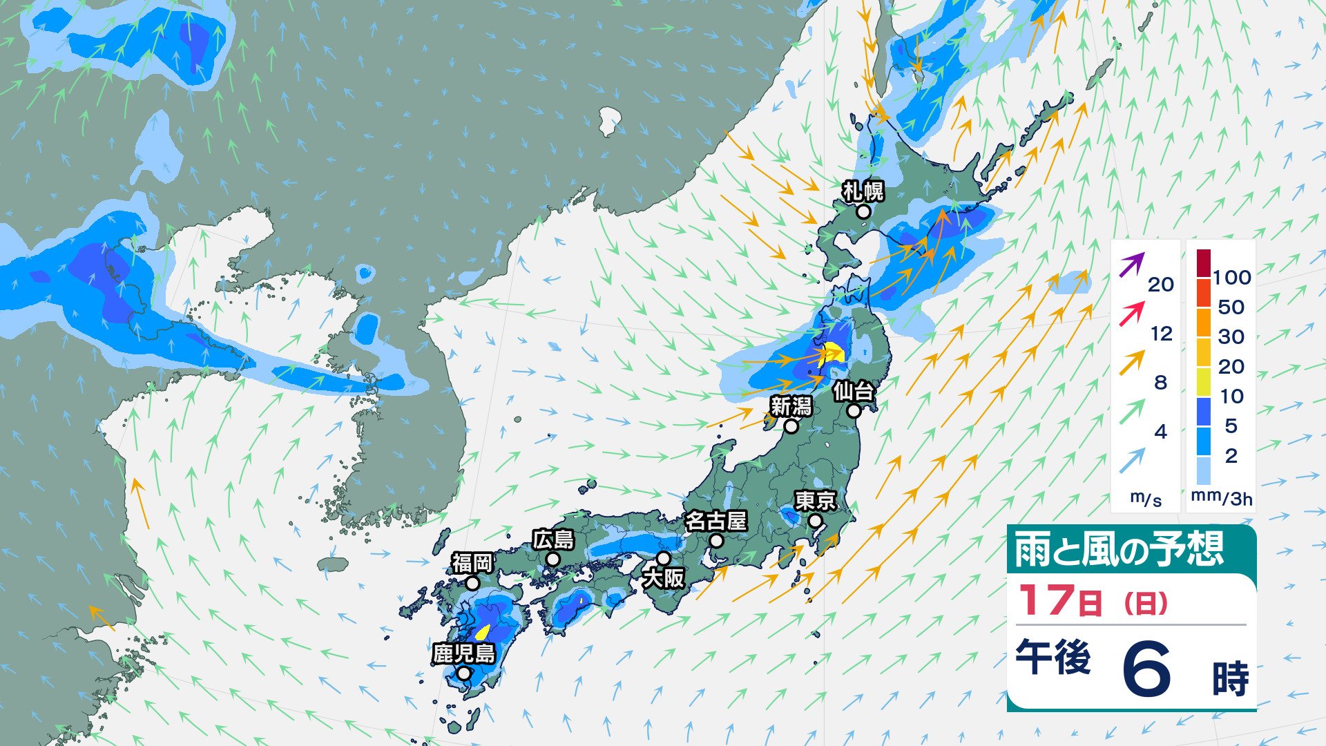 ニュースクリップ 九州北部地方は、16 日昼過ぎから夜のはじめ頃にかけて落雷や竜巻などの激しい突風、急な強い雨に注意【雨と風のシミュレーション】 2025年8月16日(土) 11:57 国内 天気 17日(日)の雨風シミュレーション