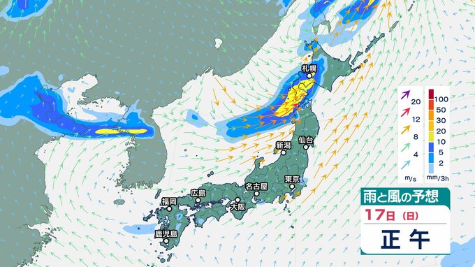 ニュースクリップ 東北地方は、雷を伴って非常に激しい雨が降り大雨となる所も…警報級の大雨の可能性も【雨と風のシミュレーション】 2025年8月17日(日) 16:07 国内 天気 17日(日)の雨風シミュレーション