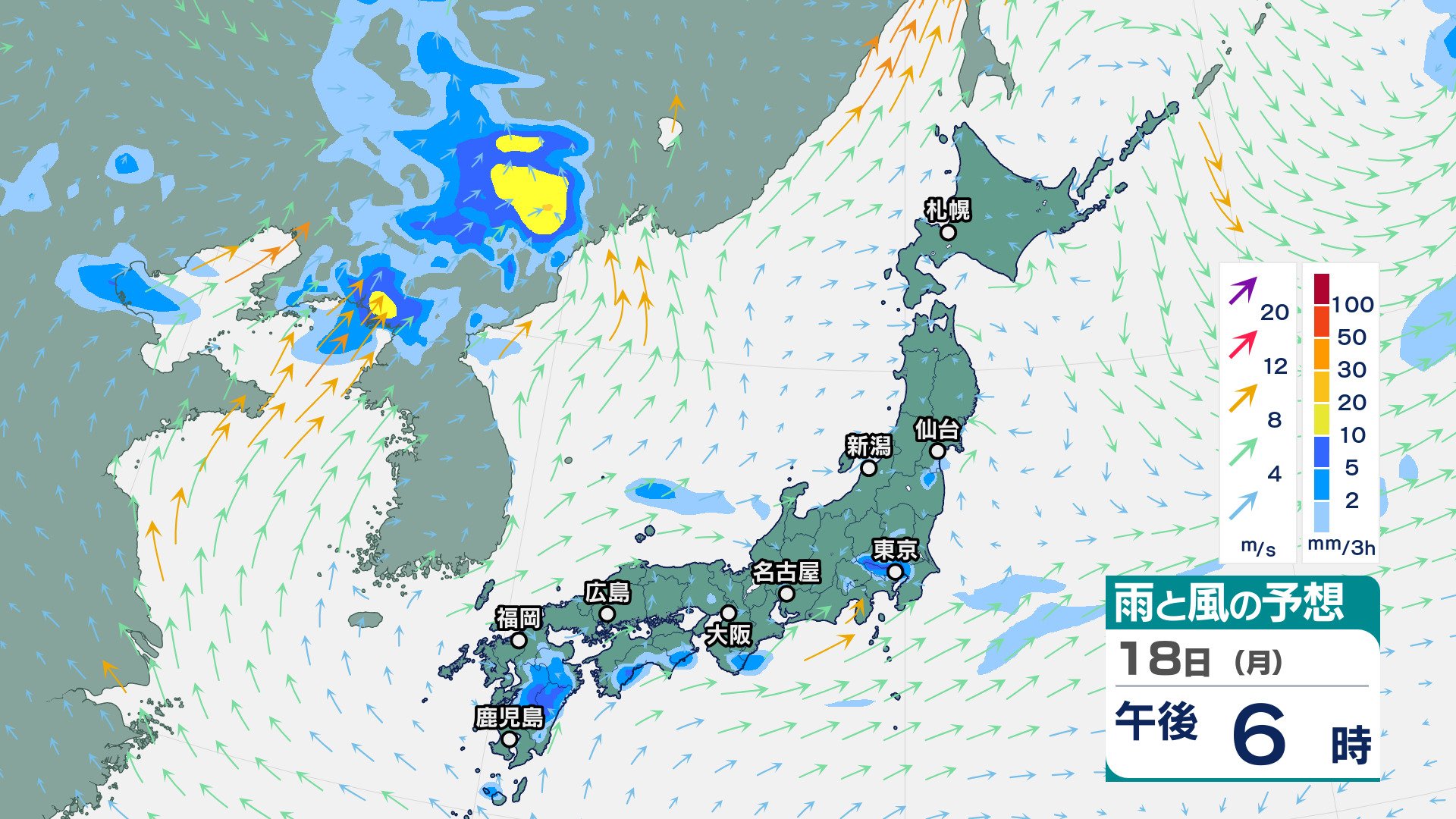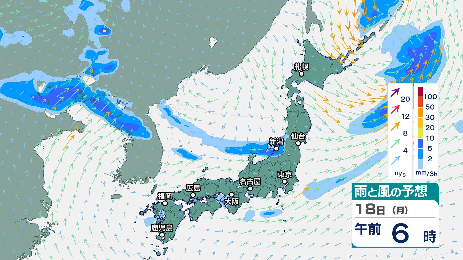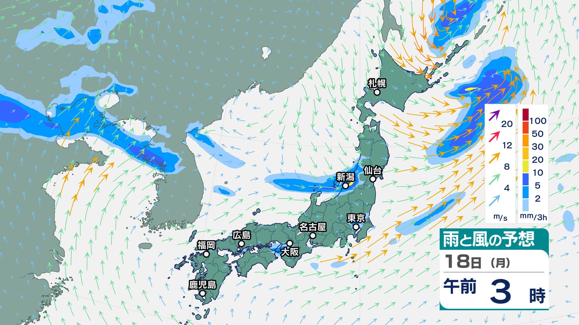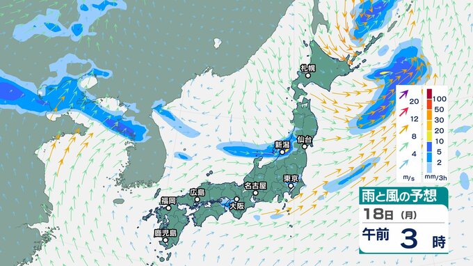 ニュースクリップ 東北地方は、雷を伴って非常に激しい雨が降り大雨となる所も…警報級の大雨の可能性も【雨と風のシミュレーション】 2025年8月17日(日) 16:07 国内 天気 18日(月)の雨風シミュレーション