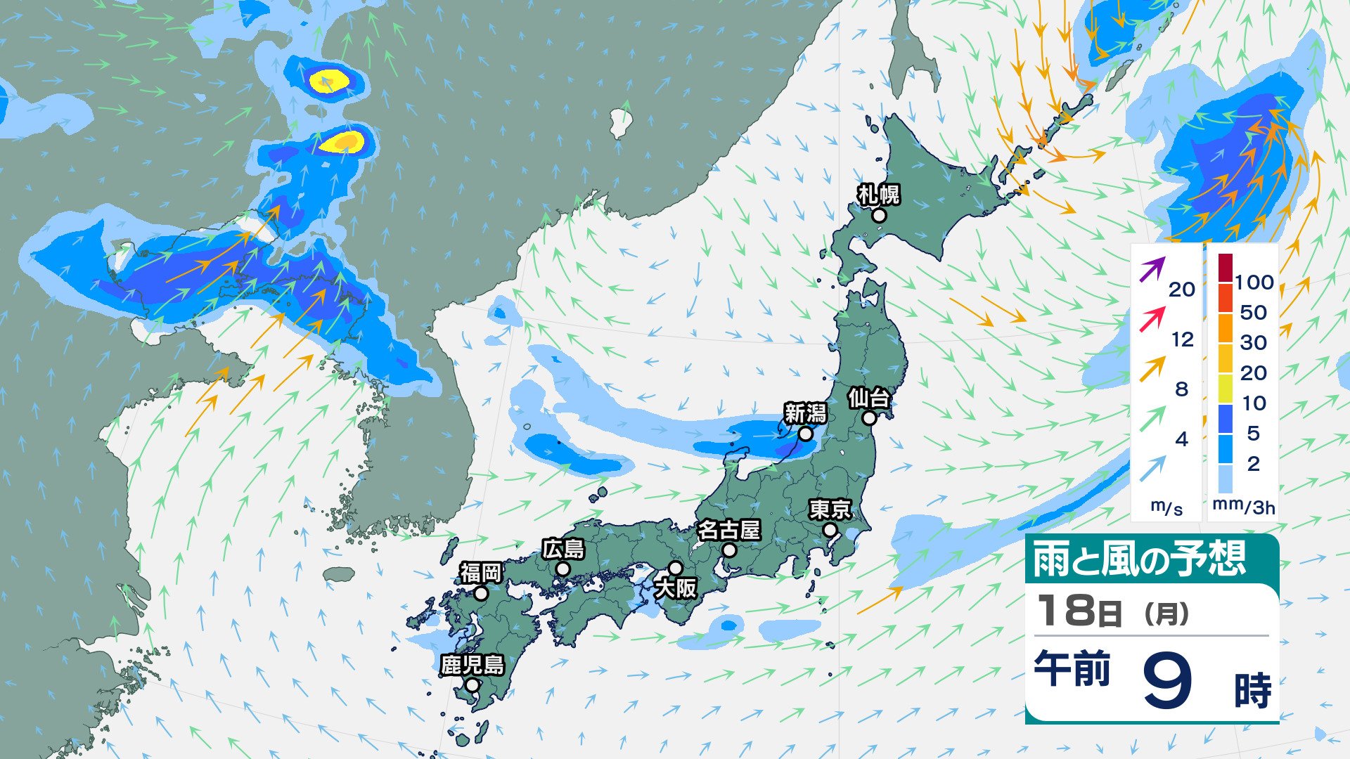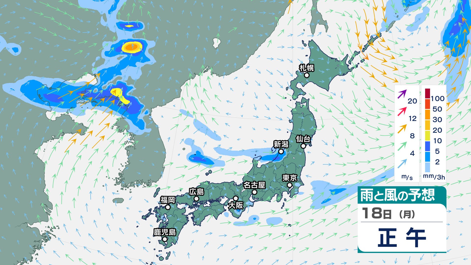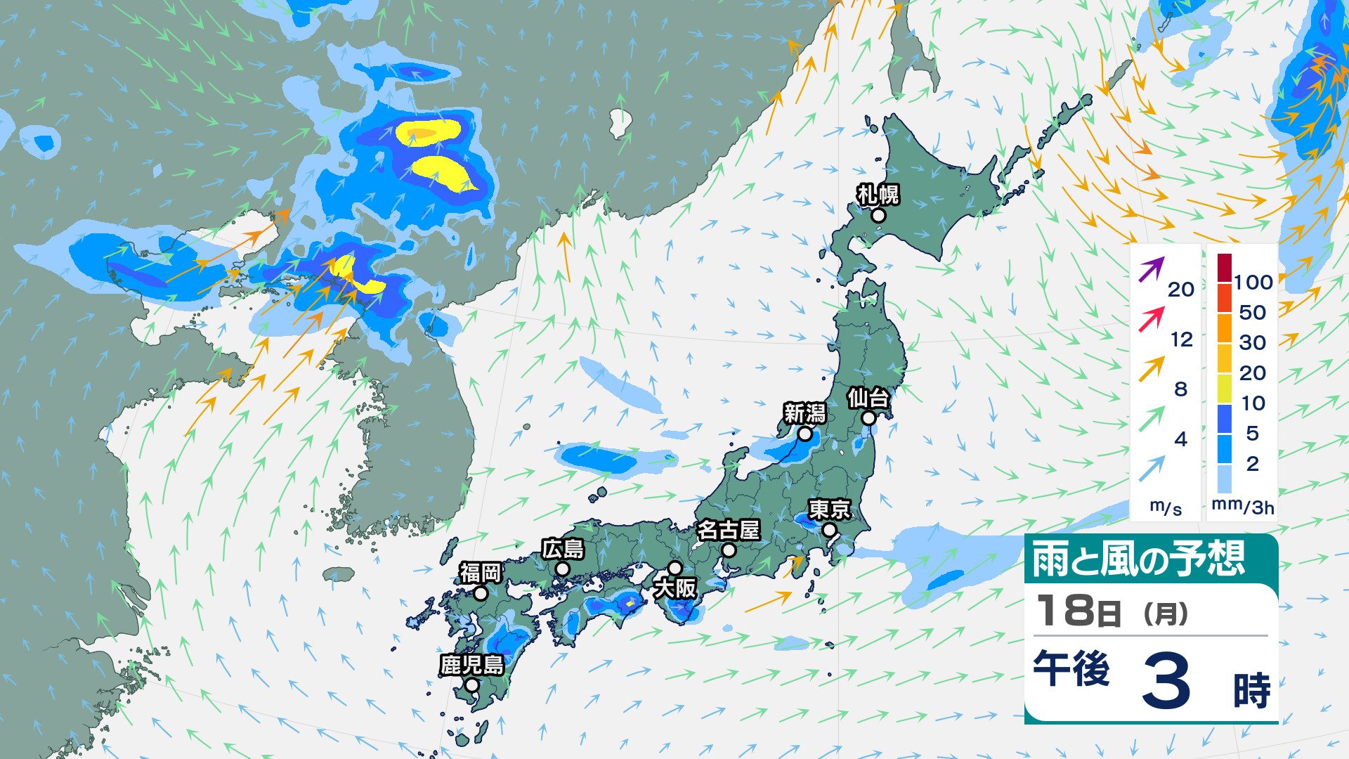 ニュースクリップ 東北地方は、雷を伴って非常に激しい雨が降り大雨となる所も…警報級の大雨の可能性も【雨と風のシミュレーション】 2025年8月17日(日) 16:07 国内 天気 18日(月)の雨風シミュレーション