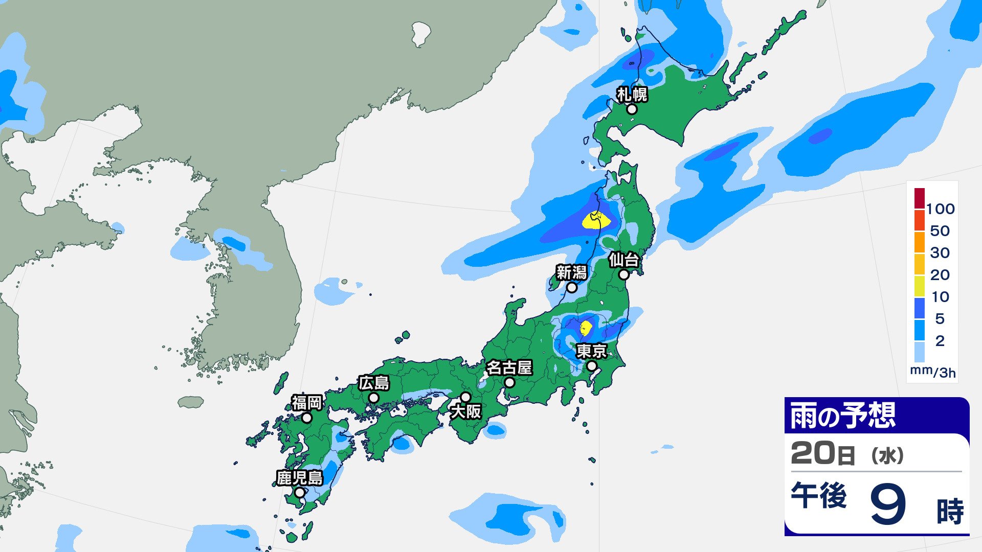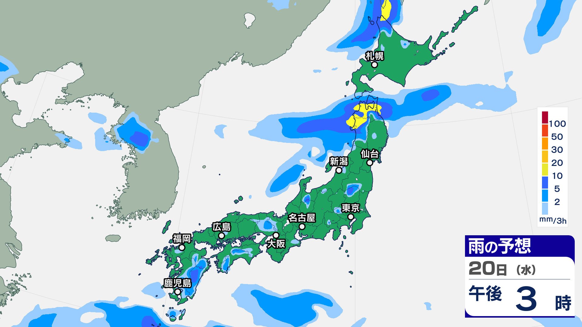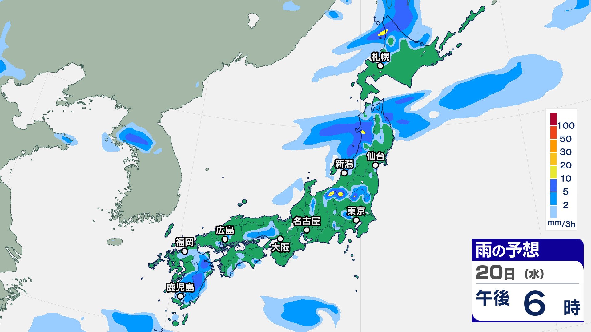 ニュースクリップ 10年に一度の著しい高温の可能性…東北太平洋側・関東甲信・東海・近畿・中国・四国・九州北部・九州南部・沖縄地方 東北太平洋側は平年より+2.6℃以上か 気象庁 2025年8月19日(火) 07:30 国内 天気 20日(水)の雨雲シミュレーション