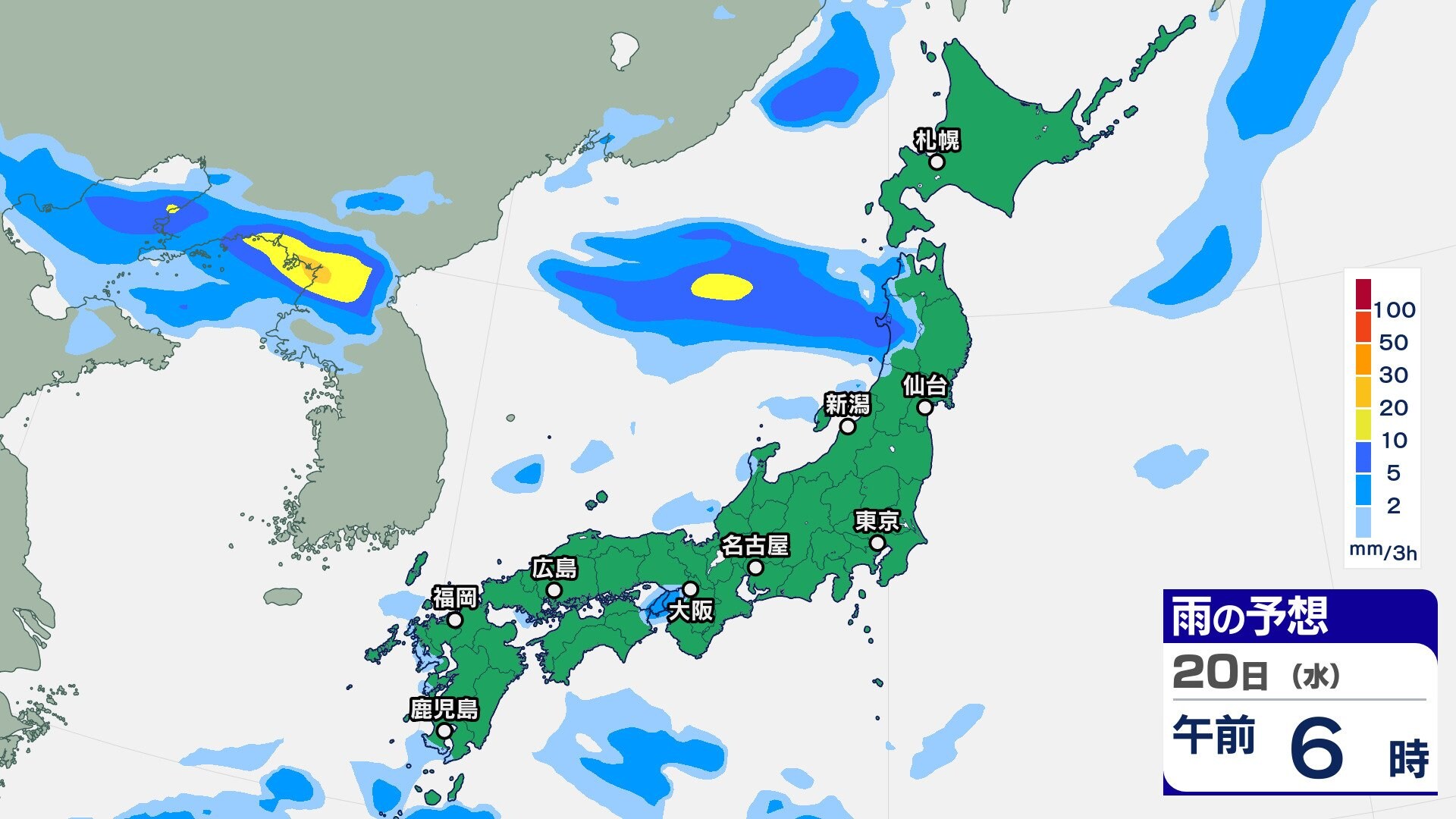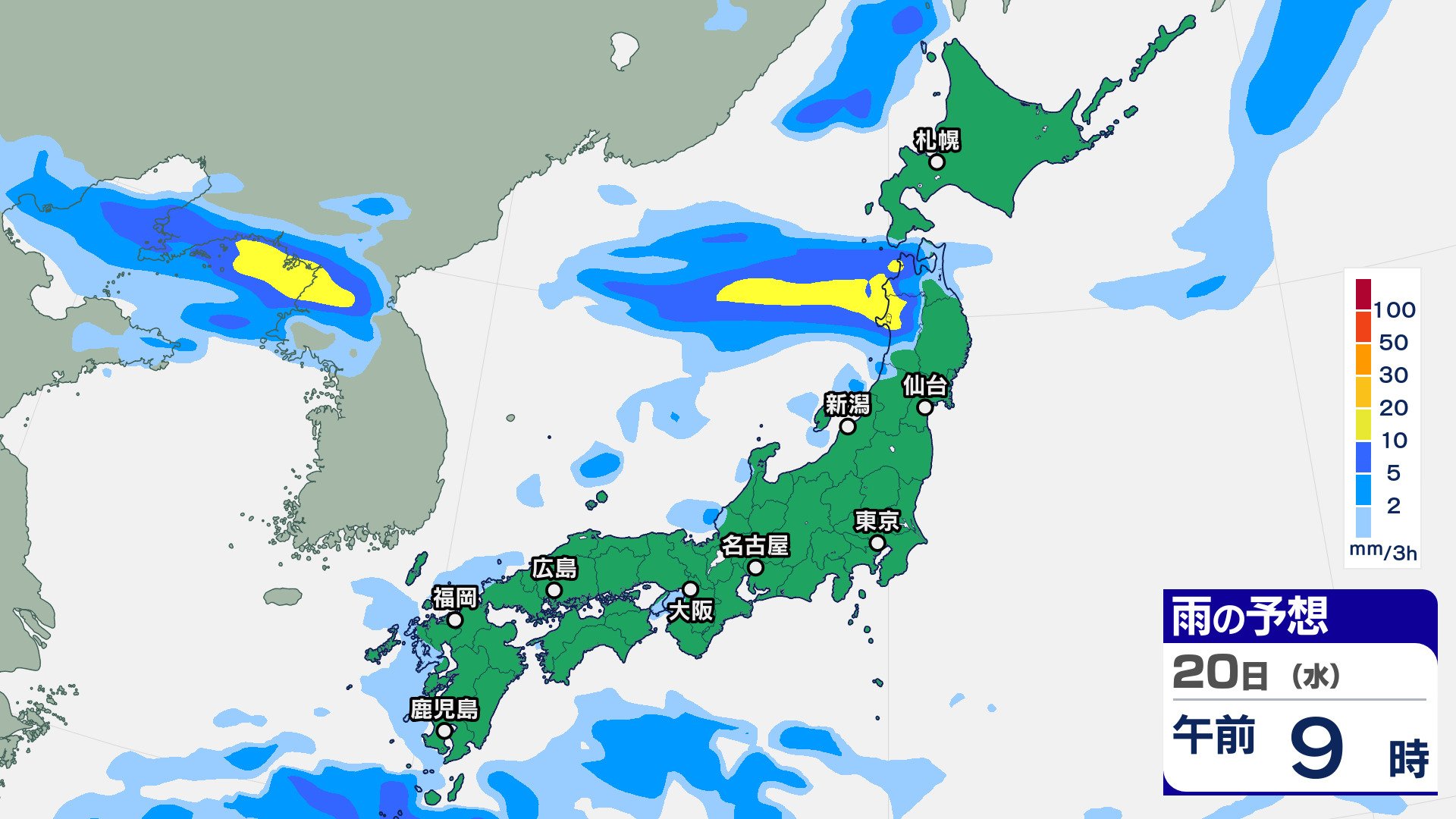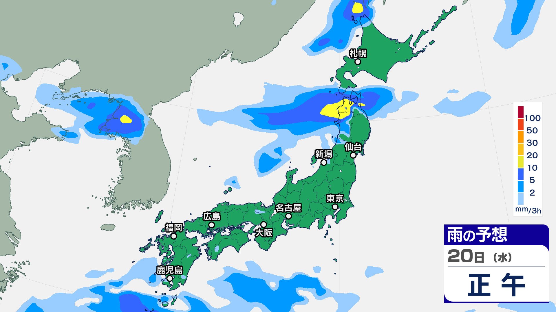 ニュースクリップ 10年に一度の著しい高温の可能性…東北太平洋側・関東甲信・東海・近畿・中国・四国・九州北部・九州南部・沖縄地方 東北太平洋側は平年より+2.6℃以上か 気象庁 2025年8月19日(火) 07:30 国内 天気 20日(水)の雨雲シミュレーション