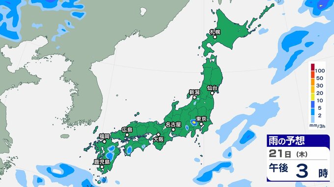 ニュースクリップ 10年に一度の著しい高温の可能性…東北太平洋側・関東甲信・東海・近畿・中国・四国・九州北部・九州南部・沖縄地方 東北太平洋側は平年より+2.6℃以上か 気象庁 2025年8月19日(火) 07:30 国内 天気 21日(木)の雨雲シミュレーション