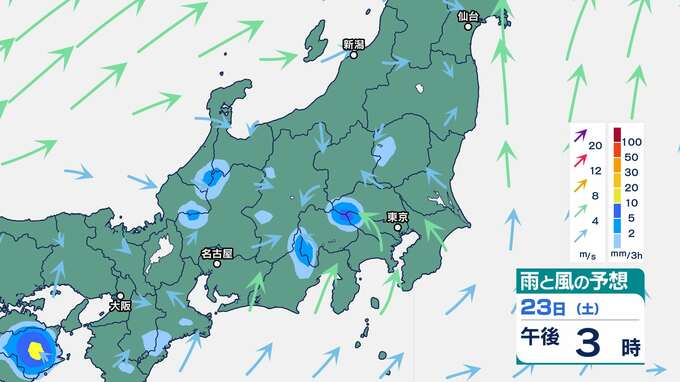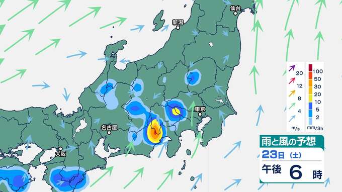 ニュースクリップ 【気象情報】関東甲信地方は20日昼前~夜遅くにかけて大気の状態が非常に不安定に…落雷や竜巻などの激しい突風、局地的な激しい雨、降ひょうに注意【雨と風のシミュレーション】 2025年8月20日(水) 07:10 国内 天気 23日(土)雨風シミュレーション