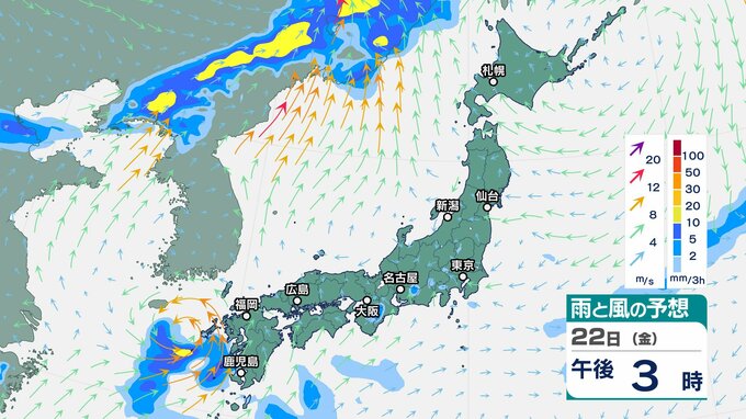 ニュースクリップ 【大雨情報】青森県、秋田県、岩手県は20日夜遅くから21日未明にかけて『線状降水帯』発生の可能性 東北北部は24時間降水量が8月の平年の1か月の降水量を超える記録的な大雨となっている所も【雨と風のシミュレーション】 2025年8月20日(水) 17:25 国内 天気 22日(金)雨と風のシミュレーション