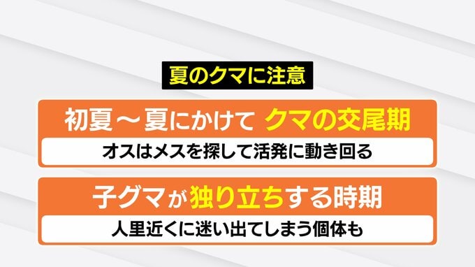 白石学芸員によりますと、初夏から夏にかけては、クマの交尾期にあたるため、オスグマはメスグマを探して活発に動き回ります。