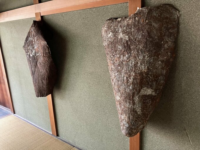 空間に配置されている造形物は、湯川さんが現地で調達した五箇山和紙や、滑川の海岸で採集した流木や海水を素材に表現しました。