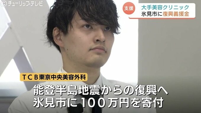 全国で美容外科を展開するTCB東京中央美容外科が、能登半島地震からの復興につなげてほしいと、氷見市に義援金100万円を寄付しました。