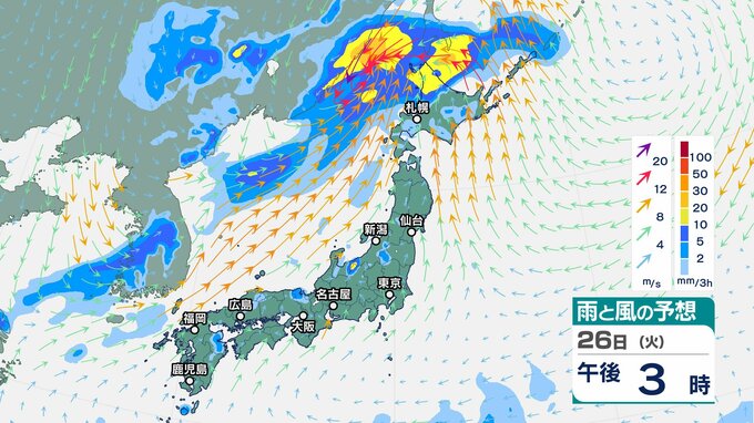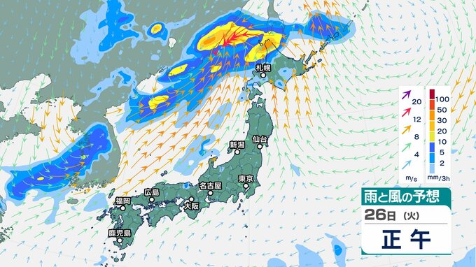 ニュースクリップ 【大雨情報】大気の状態が非常に不安定…北海道では特に厳重な警戒が必要 北日本は27日にかけ大雨による災害に警戒【雨と風のシミュレーション】 2025年8月26日(火) 06:30 国内 天気 26日(火)雨と風のシミュレーション