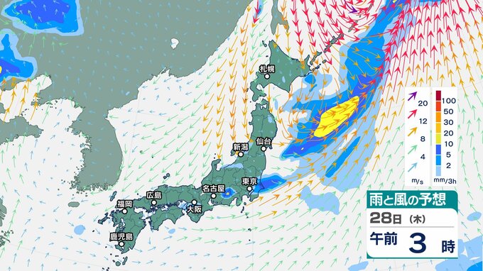 ニュースクリップ 【大雨情報】大気の状態が非常に不安定…北海道では特に厳重な警戒が必要 北日本は27日にかけ大雨による災害に警戒【雨と風のシミュレーション】 2025年8月26日(火) 06:30 国内 天気 28日(木)雨と風のシミュレーション