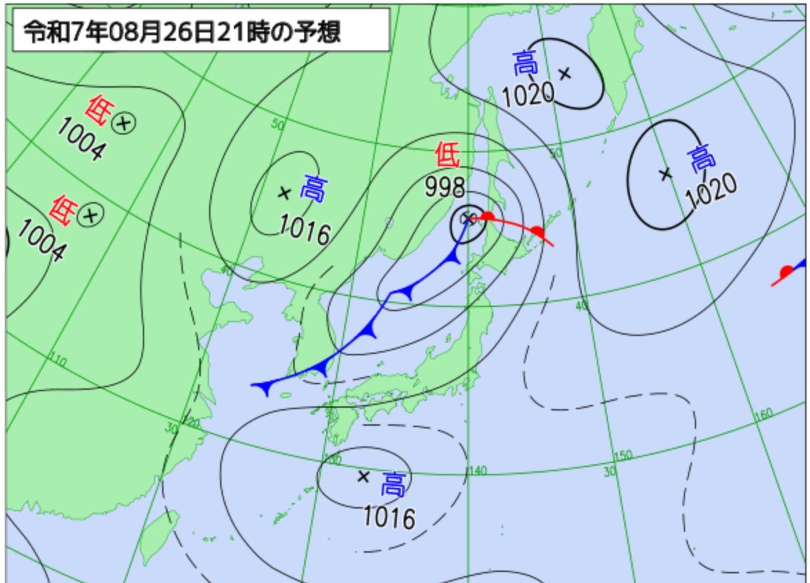 これに伴い、26日は温暖前線が北海道地方を北上し、27日は寒冷前線が日本海から本州付近を南下します。北日本では27日にかけて、土砂災害、低い土地の浸水、河川の増水や氾濫に厳重な警戒が必要です。