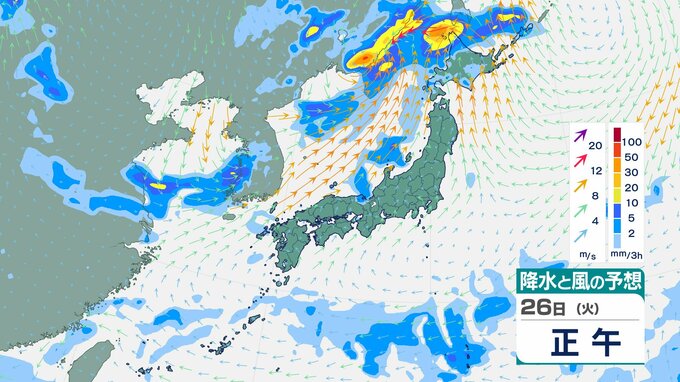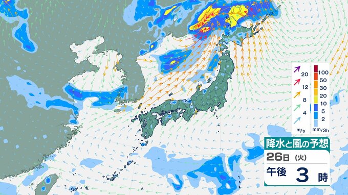 【大雨情報】北海道地方日本海側北部では26日~27日にかけての総降水量が平年の8月1か月分の降水量を超えている所が…警報級の大雨となる地域や期間が拡大するおそれ【雨風シミュレーション】 2025年8月26日(火) 16:42 国内 天気 26日(火)の雨風シミュレーション