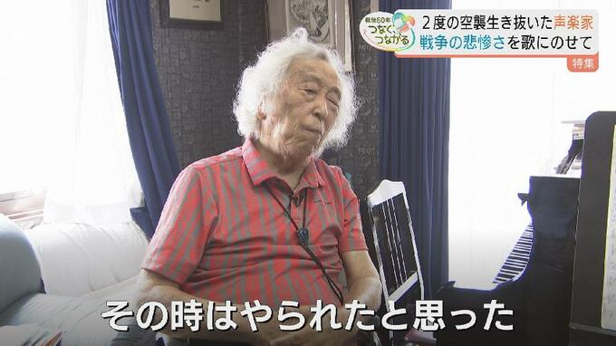 「空襲警報がなった直後にもう落ちてきたからね。玄関から逃げようと思ったら玄関が燃えている。庭から見たら今度は後ろの家が燃えている。もうバーッと燃えてる。布団を濡らして片手に持ってそこを通り抜けた」