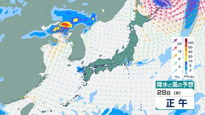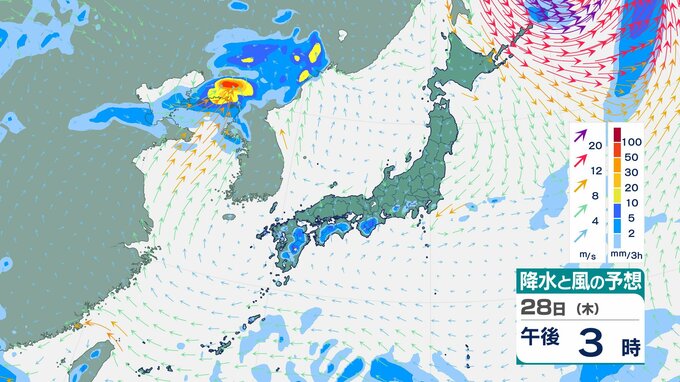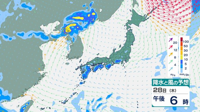 ニュースクリップ オホーツク海低気圧がもたらす北海道の強風…止まらない本州の猛暑 「健康管理に十分注意」【雨と風のシミュレーション】 2025年8月28日(木) 07:00 国内 天気 28日(木)の雨風シミュレーション