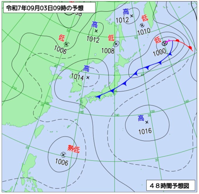 フィリピンの東にある低圧部が今後、熱帯低気圧に発達する可能性があります。この低圧部はゆっくりと北上し、3日には沖縄の南に達する見込みで、今後の進路に注意が必要です。一方、北日本では別の低気圧の影響で2日にかけて大雨となり、土砂災害に厳重な警戒が求められます。全国的に大気の不安定な状態が続き、落雷や突風、局地的な激しい雨に注意が必要です。