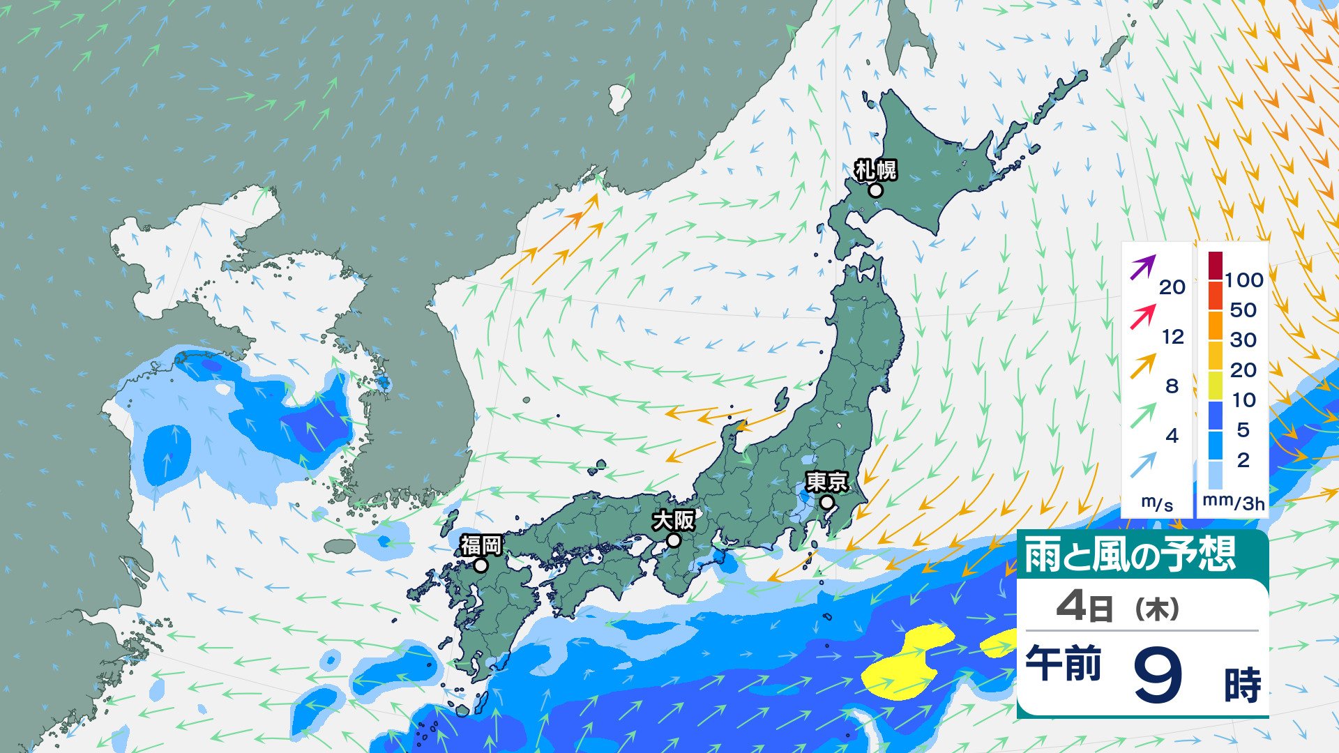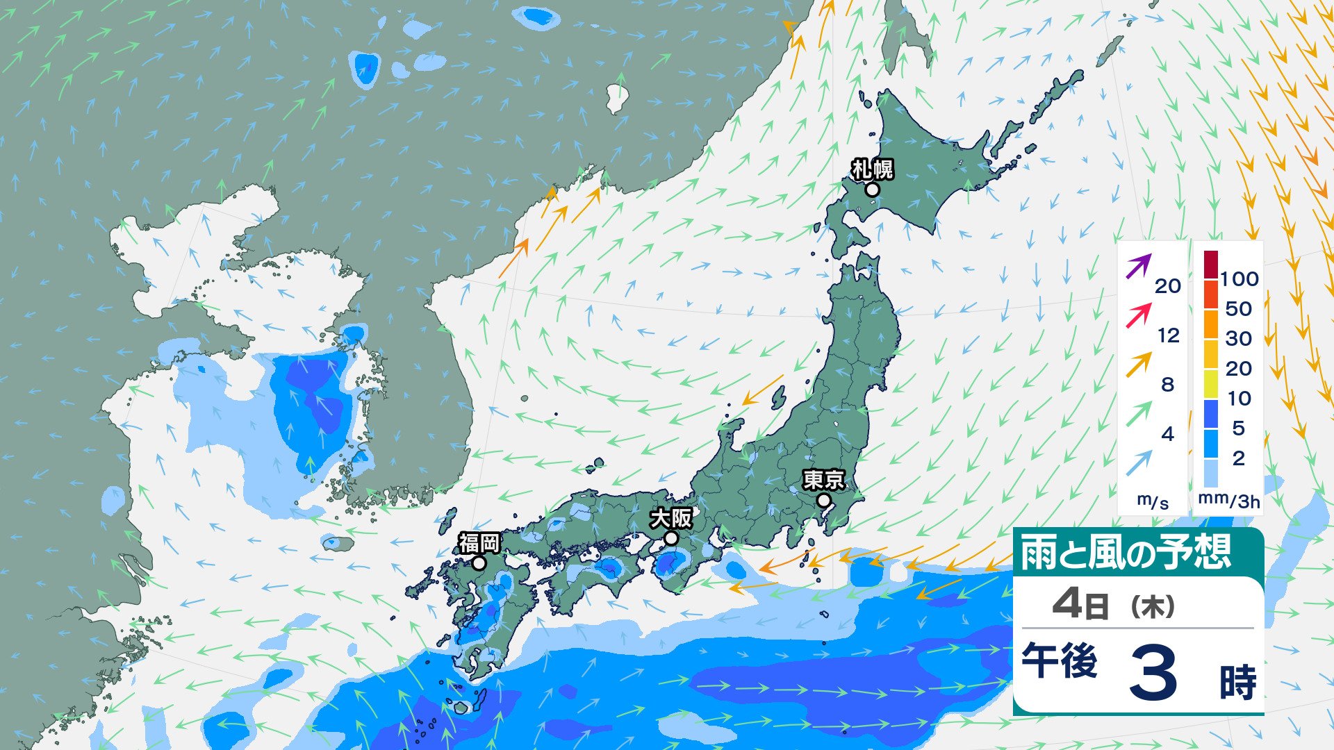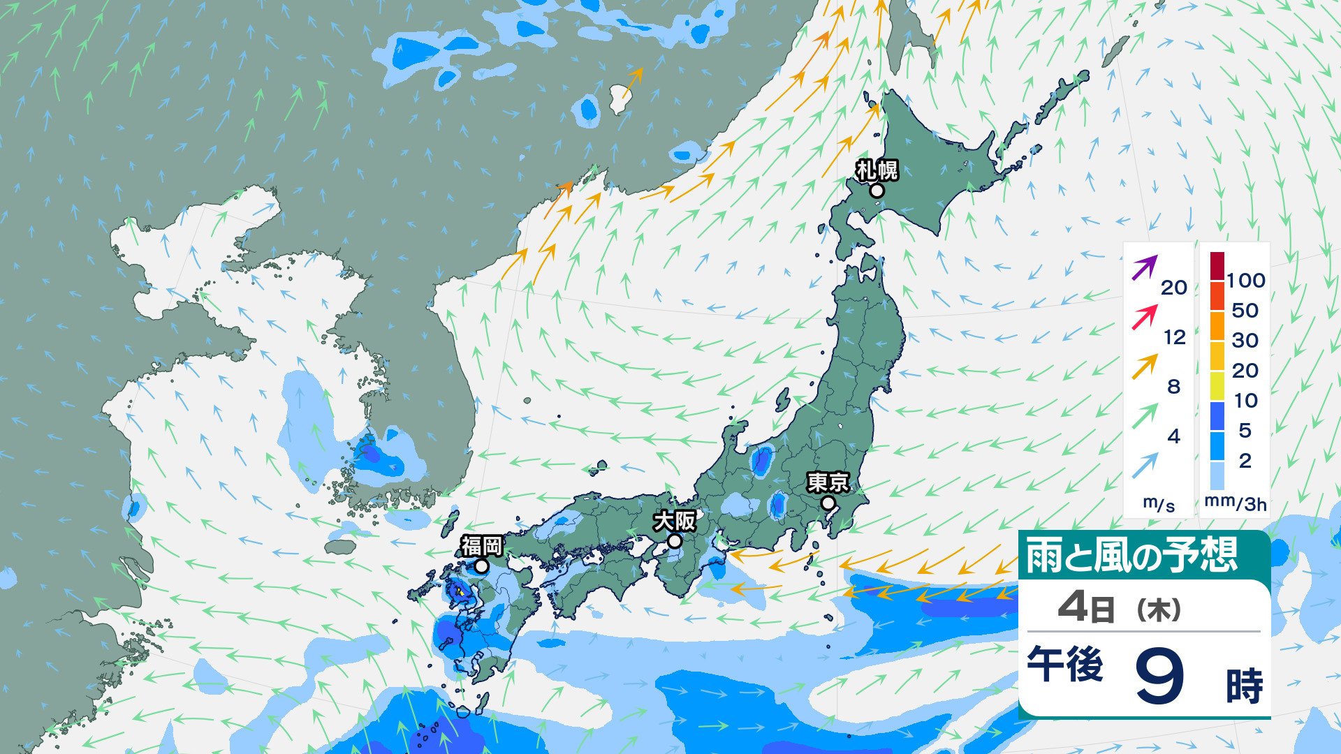 ニュースクリップ 秋田・山形では線状降水帯発生の可能性 3日未明から朝にかけ 能代は観測史上最大の雨量更新 土砂災害や河川氾濫に厳重警戒を【雨と風のシミュレーション】 2025年9月2日(火) 18:40 国内 天気 4日(木)雨と風のシミュレーション