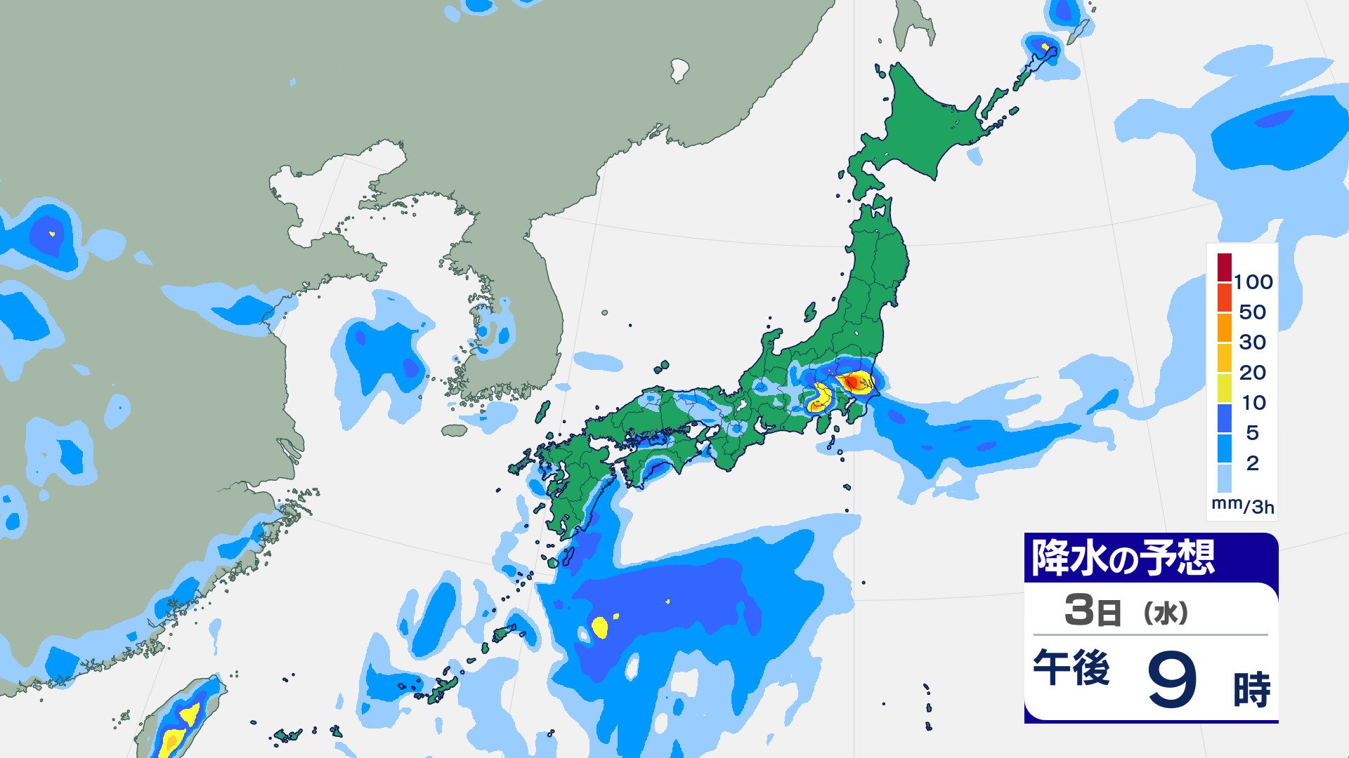 ニュースクリップ 【関東甲信】線状降水帯発生のおそれ…今夜はじめ頃にかけ 気象庁「大雨、低い土地の浸水や河川の増水」警戒呼びかけ【雨のシミュレーション】 2025年9月3日(水) 17:27 国内 天気 3日(水)降水のシミュレーション