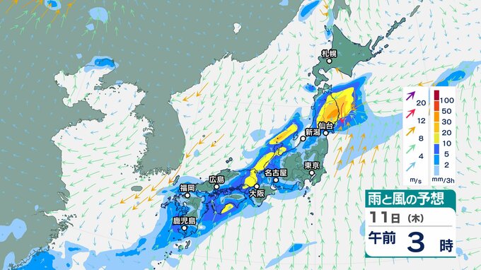ニュースクリップ 【気象情報】前線 “ゆっくり南下” …11日にかけて西日本、東日本で大雨続く見込み 土砂災害や河川の増水、氾濫に警戒【雨と風のシミュレーション】 2025年9月10日(水) 12:31 国内 天気 11日(木)雨と風のシミュレーション