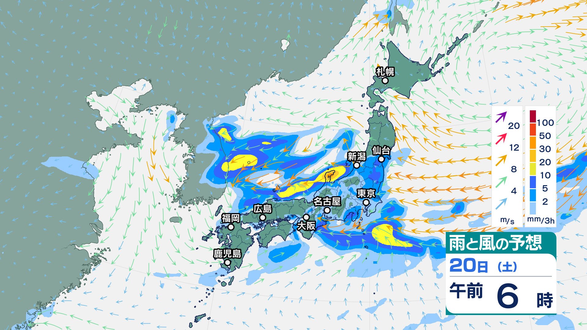 ニュースクリップ 【気象情報】「大気の状態が非常に不安定」 高気圧による猛暑と前線通過の大雨…熱中症と土砂災害に警戒【雨と風のシミュレーション】 2025年9月16日(火) 14:39 国内 天気 馬場浩治@TUT 20日(土)の雨風シミュレーション