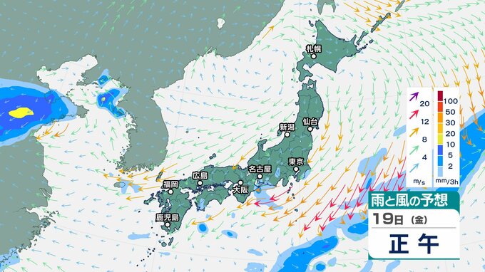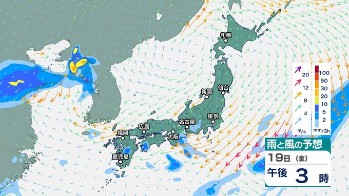 ニュースクリップ 暑さはいつまで?北陸は平年より2.1℃以上高い見込み この時期としては“10年に一度”レベルの高温予想 対象は日本全国 早期天候情報 2025年9月19日(金) 06:06 国内 天気 19日(金)雨と風のシミュレーション