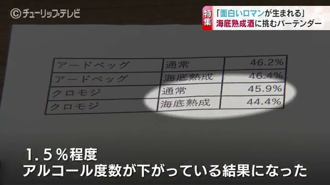 「1.5パーセント程度アルコール度数が下がっている結果になりました。化学変化で減ったのか単純に揮発してしまったのかはわからないんですけど、アルコールが減ってしまった分、まろやかに感じることはありえるのかもしれないですね」