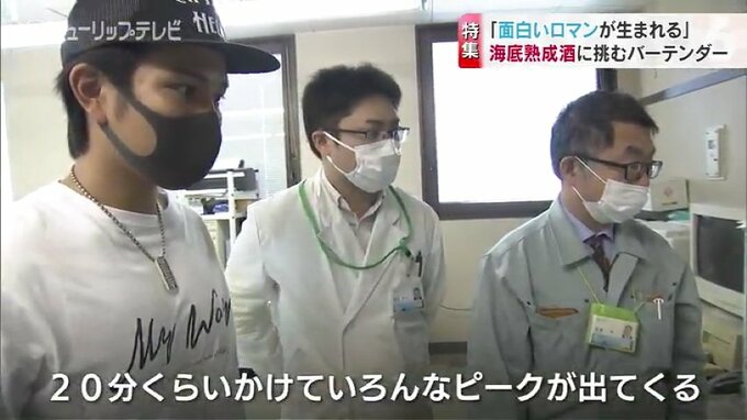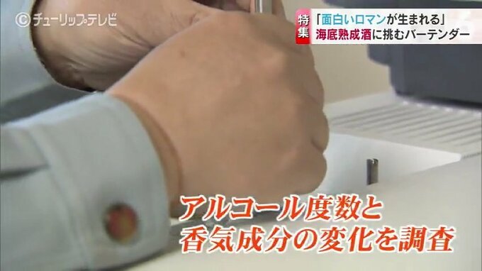 海底に沈めた「クロモジジン」のアルコール度数と香気成分の変化を調べます。