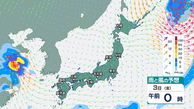 ニュースクリップ 【気象情報】北陸地方 2日明け方にかけ落雷や竜巻、ひょう、急な強い雨に注意 大気の状態は非常に不安定【雨と風 シミュレーション】 2025年10月1日(水) 10:34 国内 天気 3日(金)雨と風のシミュレーション