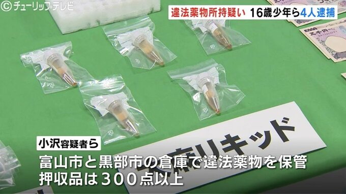 警察によりますと、小沢容疑者らは富山市と黒部市の倉庫で違法薬物を保管していて、押収品は300点以上にのぼるということです。