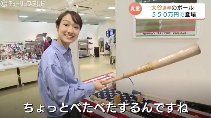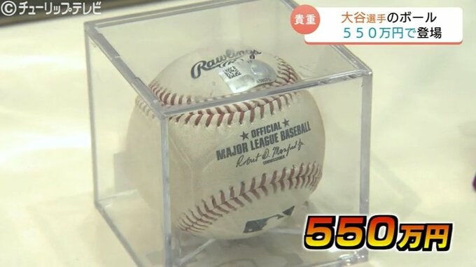 こちらは大谷選手がエンゼルス在籍時にドジャースとの試合で投げたものでお値段550万円。2日から富山大和で開催されている日本メジャーリーガーミュージアム風ショップです。