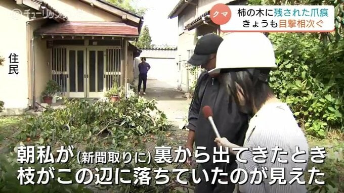 住民によりますと、この柿の木では5年前にもクマの痕跡が見つかったということで、再びクマが柿の実を求めてやってこないように伐採することにしました。
