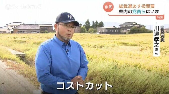 砺波市苗加で農業を営む川邉孝之さん(43)。12年ほど前から自民党員を続けています。