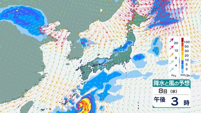 ニュースクリップ 【台風情報】小笠原近海の熱帯低気圧“台風のたまご”…5日午後6時までに台風へ 5日の小笠原諸島の最大風速は15m予想【雨風シミュレーション】 2025年10月4日(土) 20:19 国内 天気 8日の雨風シミュレーション