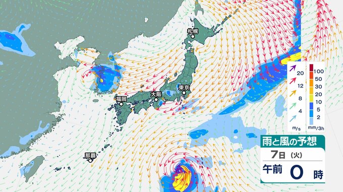 ニュースクリップ 【台風情報】台風22号(ハーロン)日本の南を「非常に強い」勢力で急カーブか…西から東へ 最大瞬間風速60メートル予測【雨風シミュレーション】 2025年10月6日(月) 11:20 国内 天気 7日(火)雨と風のシミュレーション